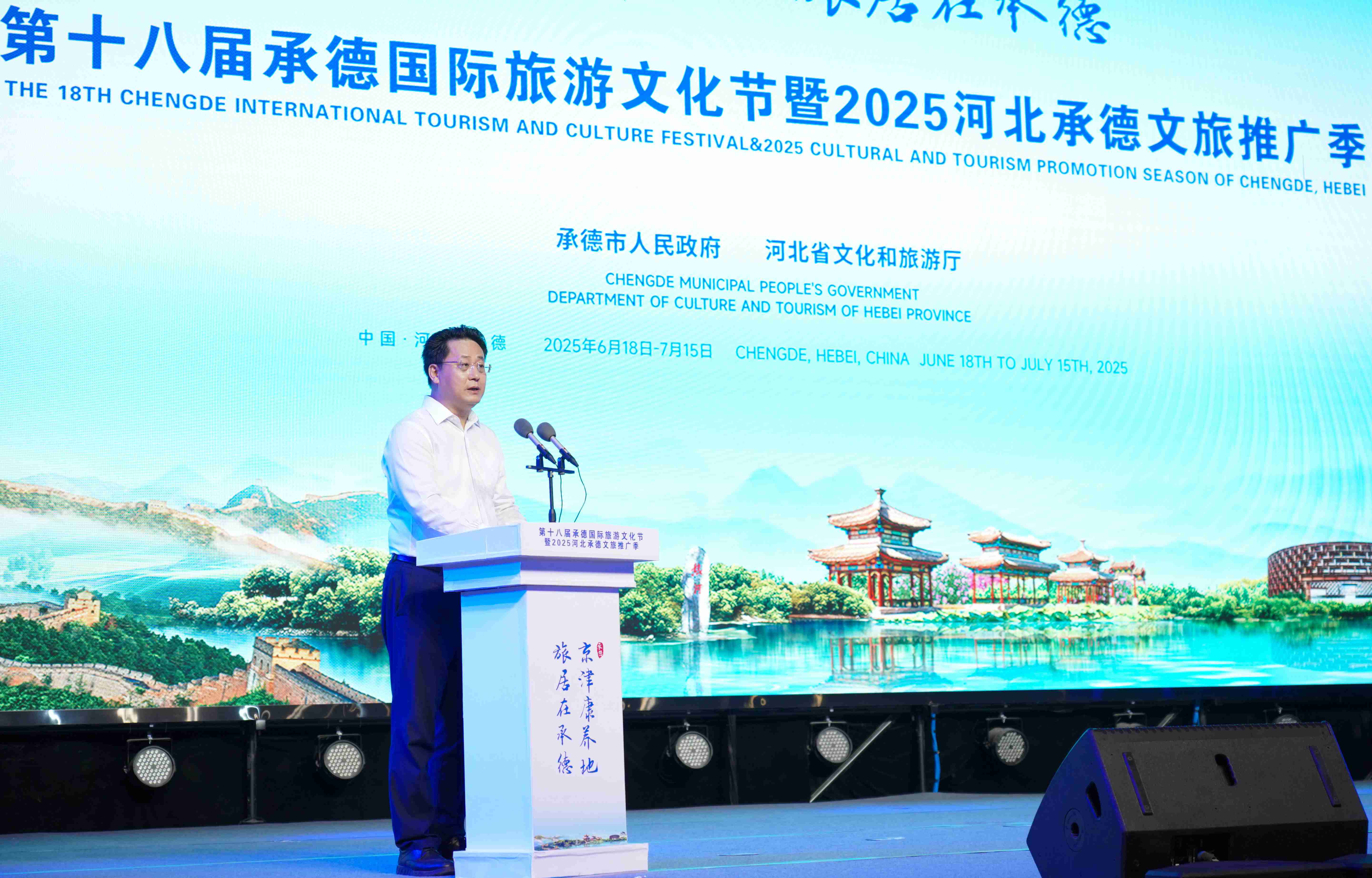 在熱烈的氛圍中,與會(huì)領(lǐng)導(dǎo)共同按下啟動(dòng)裝置,標(biāo)志著第十八屆承德國(guó)際旅游文化節(jié)暨2025河北承德文旅推廣季正式啟幕。